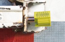 ISO 17712:2013 containerplomben består af en fleksibel plombe med et fleksibelt kabel.
